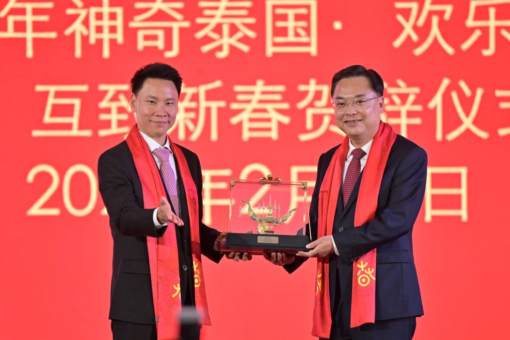 ในพิธี ทั้งสองประเทศได้แลกเปลี่ยนของที่ระลึกเป็นสัญลักษณ์แห่งมิตรภาพ พร้อมการแสดงทางวัฒนธรรมจากสาธารณรัฐประชาชนจีน 4 คณะ จากกรุงปักกิ่ง นครฉงซิ่ง มณฑลเหอหนาน และมณฑลฝูเจี้ยน นำเสนอการแสดงชุด “ระบำต้อนรับตรุษจีน” จากมณฑลฝูเจี้ยน ขณะที่ประเทศไทยนำเสนอชุด “ระบำอาชาศรีสยาม” ถ่ายทอดเสน่ห์ศิลปวัฒนธรรมไทยอย่างงดงาม พร้อมเซอร์ไพรส์จากศิลปินนักแสดงชาวจีน “จู เจิ้งถิง” สร้างความประทับใจแก่ประชาชนและนักท่องเที่ยวอย่างเต็มอิ่ม