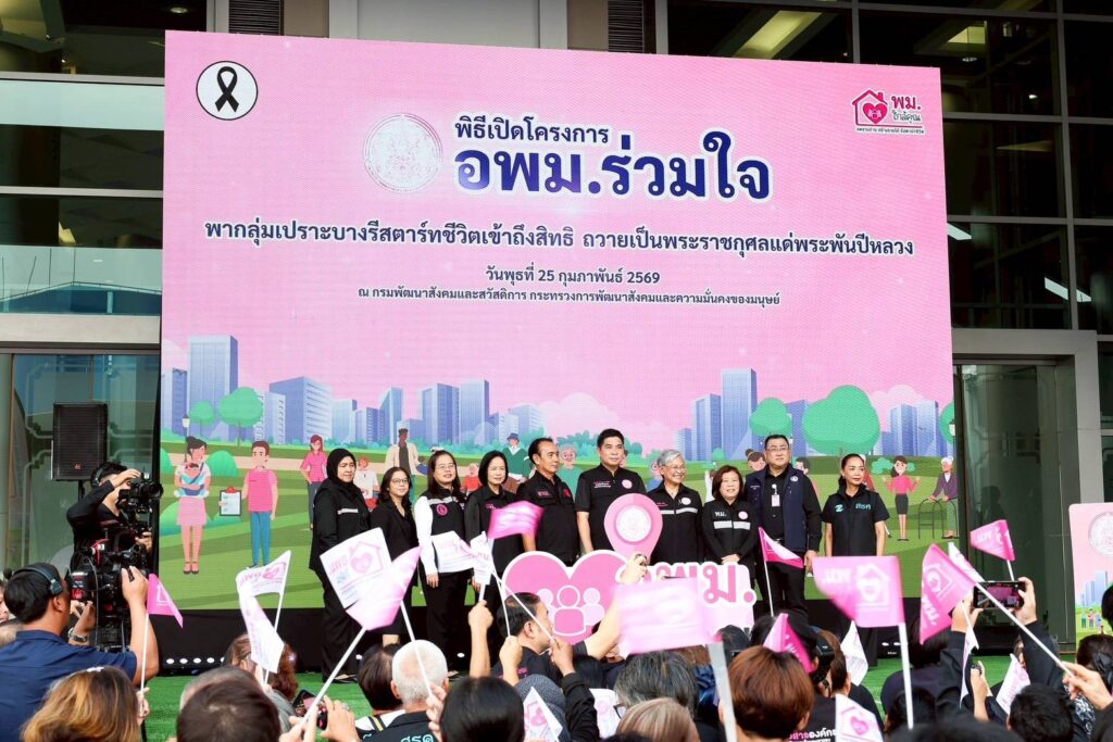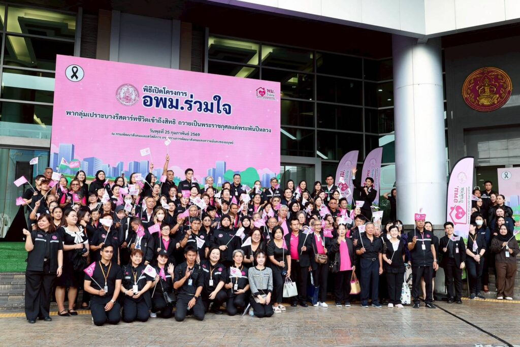 วันที่ 25 กุมภาพันธ์ 2569 นายกองตรี ดร.ธนกฤต จิตรอารีย์รัตน์ เลขานุการรัฐมนตรีว่าการกระทรวงการพัฒนาสังคมและความมั่นคงของมนุษย์ เป็นประธานเปิดโครงการ “อพม. ร่วมใจพากลุ่มเปราะบางรีสตาร์ทชีวิตเข้าถึงสิทธิ เพื่อถวายเป็นพระราชกุศลแด่พระพันปีหลวง” พร้อมปล่อยขบวนรถคาราวาน “พม. เข้าถึงสิทธิ” สำรวจเยี่ยมเยียนครัวเรือนเปราะบางในพื้นที่กรุงเทพมหานคร นำโดยหน่วยงานในสังกัดกระทรวง พม. ร่วมกับอาสาสมัครพัฒนาสังคมและความมั่นคงของมนุษย์ (อพม.) กรุงเทพมหานคร และภาคีเครือข่าย โดยมี นางสาวแรมรุ้ง วรวัธ อธิบดีกรมพัฒนาสังคมและสวัสดิการ กล่าวรายงาน พร้อมทั้งคณะผู้บริหาร ข้าราชการ และเจ้าหน้าที่กระทรวง พม. รวมถึงอาสาสมัครพัฒนาสังคมและความมั่นคงของมนุษย์ (อพม.) กรุงเทพมหานคร เข้าร่วมงาน ณ บริเวณโถงชั้น 1 และลานหน้าอาคารกรมพัฒนาสังคมและสวัสดิการ กระทรวง พม. จากนั้น เดินรณรงค์ประชาสัมพันธ์สิทธิสวัสดิการสังคมตามภารกิจกระทรวง พม. สำหรับประชาชนทุกกลุ่มเป้าหมายไปยังชุมชนดำรงรักษ์ เขตป้อมปราบศัตรูพ่าย กรุงเทพฯ นอกจากนี้ เดินทางไปลงพื้นที่ ณ ชุมชนร่มเกล้า เขตลาดกระบัง กรุงเทพฯ เพื่อเยี่ยมเยียนครัวเรือนเปราะบาง และมอบสิทธิสวัสดิการสังคมตามภารกิจกระทรวง พม. เพื่อบรรเทาความเดือดร้อน