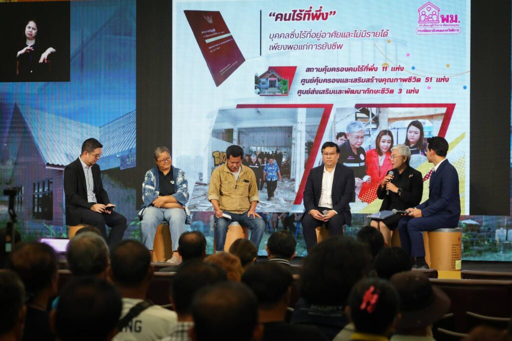 นายนิกร กล่าวว่า ที่ผ่านมา กระทรวง พม. โดย กรม พส. ได้ดำเนินงานในมิติของคนไร้ที่พึ่ง โดยมุ่งเน้นการคุ้มครองโดยการจัดบริการด้านปัจจัยสี่ ในลักษณะของการสงเคราะห์โดยรัฐ และแสวงหาความร่วมมือจากครอบครัว เครือข่าย และชุมชน แต่ยังขาดเครื่องมือที่จำเป็นในการร่วมดูแล ทั้งนี้ กระทรวง พม. จึงมุ่งมั่นในการเปลี่ยนผ่านไปสู่การเป็นรัฐเป็นผู้สนับสนุน เพื่อสร้างระบบคุ้มครองทางสังคมที่เข้มแข็ง ด้วยการนำเทคโนโลยีและสารสนเทศ โดยระบบสมุดพกครอบครัวอิเล็กทรอนิกส์ (MSO-Logbook) มาใช้เพื่อให้ทุกคนได้สิทธิสวัสดิการแบบมุ่งเป้าอย่างแม่นยำ ซึ่งปัจจุบัน กระทรวง พม. ได้ออกประกาศสำคัญ 2 ฉบับ ได้แก่ ฉบับแรกคือ การสร้างความมั่นคงในที่อยู่อาศัยผ่านการสนับสนุนค่าใช้จ่ายในการจัดหาที่อยู่อาศัย เพื่อให้เป็นพื้นที่ปลอดภัย โดยสนับสนุนค่าเช่าตามจริงไม่เกิน 1,500 บาทต่อเดือน ได้แก่ ค่าน้ำ ค่าไฟ ค่าเครื่องนุ่งห่ม และเครื่องนอน พร้อมทั้งค่าใช้จ่ายสนับสนุนภาคีเครือข่ายภาคเอกชนร่วมดำเนินงาน และฉบับที่สอง คือ การคุ้มครองคนไร้ที่พึ่งแบบครอบครัวอุปการะ ถือเป็นเครื่องมือทางสังคมที่ส่งเสริมและสนับสนุนความสัมพันธ์ของครอบครัวและชุมชนต่อคนไร้ที่พึ่ง โดยสนับสนุนค่าตอบแทนแก่ครอบครัวที่รับอุปการะ 5,000 บาท ต่อคนต่อเดือน เพื่อให้คนไร้ที่พึ่งสามารถกลับไปดำรงชีวิตในสิ่งแวดล้อมแบบครอบครัวได้