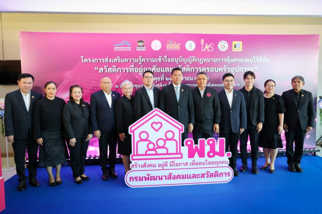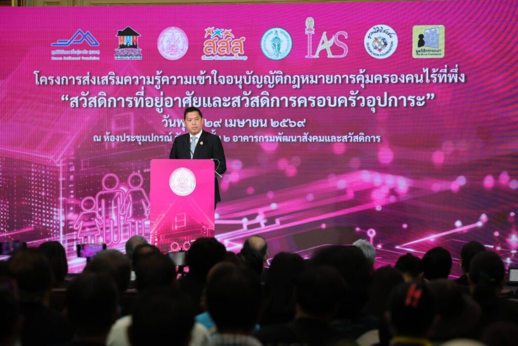 วันที่ 29 เมษายน 2569 นายนิกร โสมกลาง รัฐมนตรีว่าการกระทรวงการพัฒนาสังคมและความมั่นคงของมนุษย์ (รมว.พม.) เป็นประธานเปิดโครงการส่งเสริมความรู้ความเข้าใจอนุบัญญัติกฎหมายการคุ้มครองคนไร้ที่พึ่ง “สวัสดิการที่อยู่อาศัยและสวัสดิการครอบครัวอุปการะ” โดยบูรณาการความร่วมมือระหว่าง กระทรวง พม. โดยกรมพัฒนาสังคมและสวัสดิการ , กรุงเทพมหานคร , สำนักงานกองทุนสนับสนุนการสร้างเสริมสุขภาพ (สสส.) , สถาบันเอเชียศึกษา จุฬาลงกรณ์มหาวิทยาลัย , มูลนิธิพัฒนาเพื่ออยู่อาศัย , สมาพันธ์คนไร้บ้านไทย , มูลนิธิกระจกเงา และ มูลนิธิอิสรชน ซึ่งมี นายกันตพงศ์ รังษีสว่าง ปลัดกระทรวงการพัฒนาสังคมและความมั่นคงของมนุษย์ , นางสาวแรมรุ้ง วรวัธ อธิบดีกรมพัฒนาสังคมและสวัสดิการ , ผู้บริหารกระทรวง พม. และ ผู้บริหารและผู้แทนหน่วยงานที่เกี่ยวข้อง เข้าร่วม ณ ห้องประชุมปกรณ์ อังศุสิงห์ ชั้น 2 อาคารกรมพัฒนาสังคมและสวัสดิการ กระทรวง พม. สะพานขาว กรุงเทพฯ